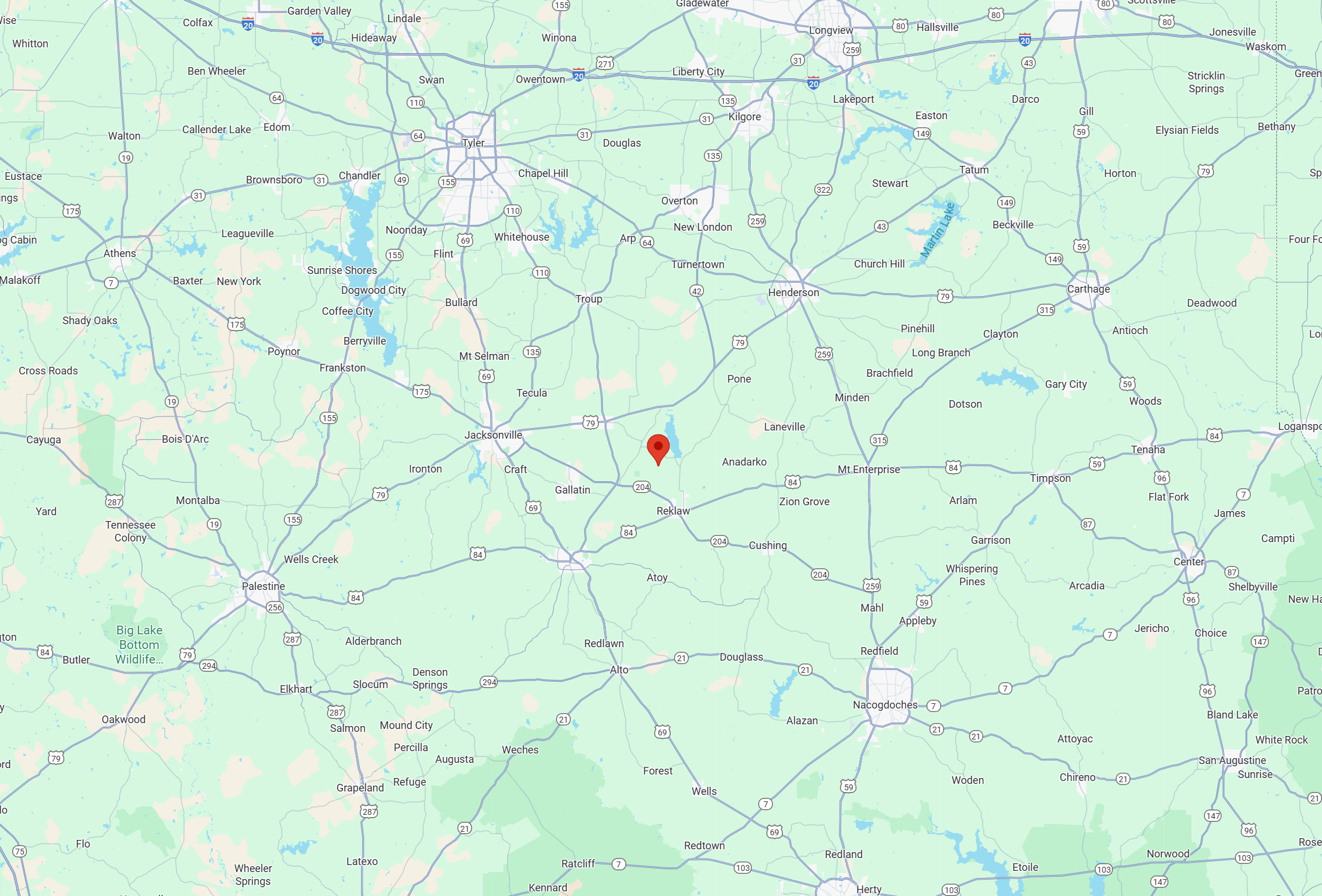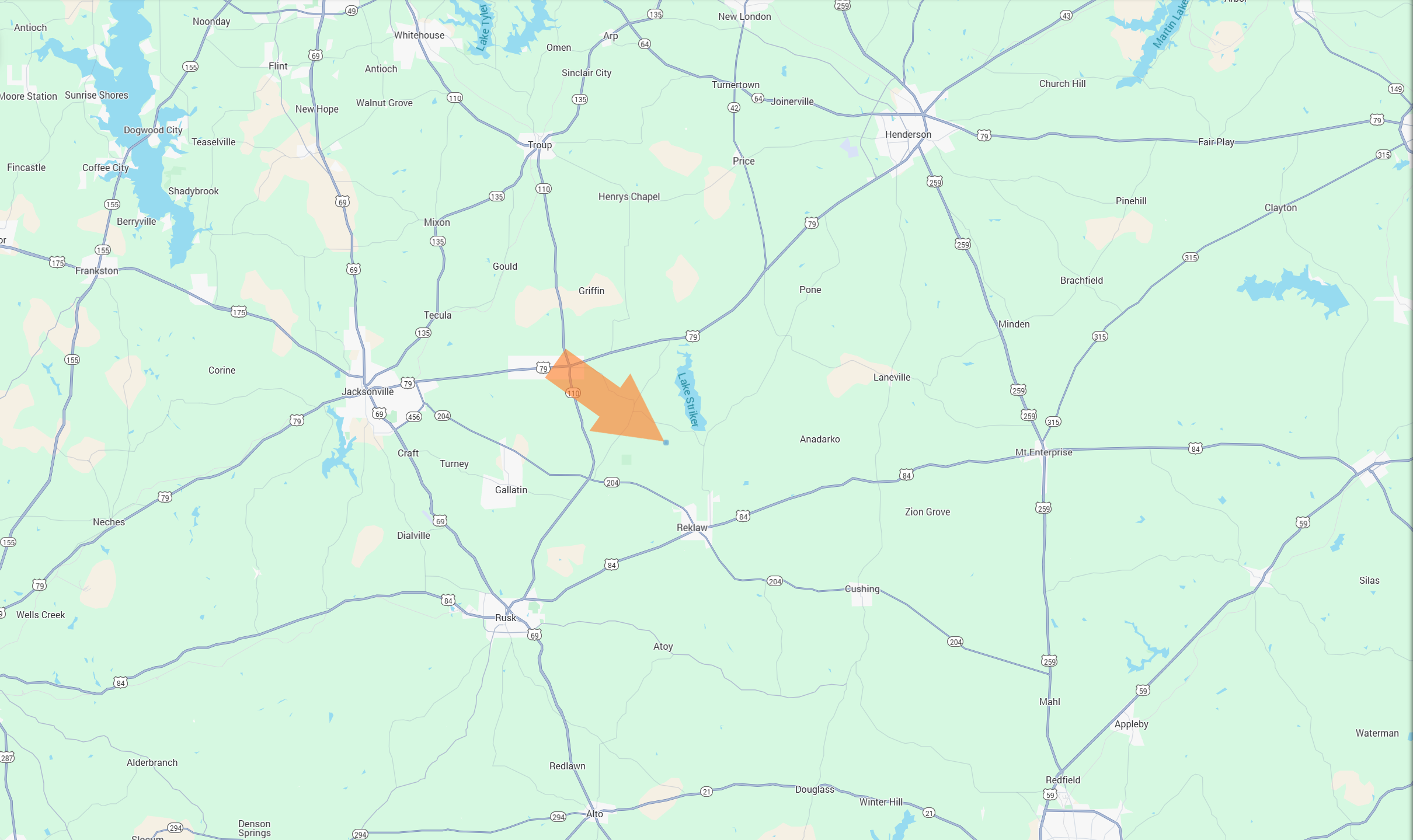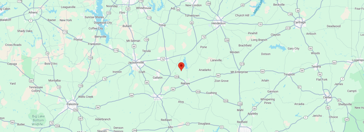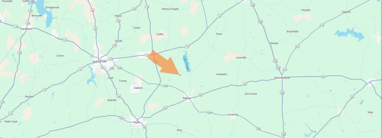 Rusk & Cushing – 15 Mins. | Jacksonville or Henderson – 20 Mins. | Tyler or Nacogdoches – 40 Mins.